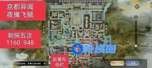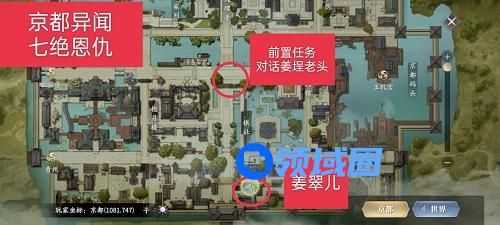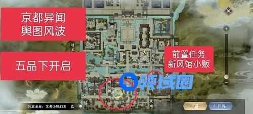 1、京都异闻一共有五个异闻,每个异闻都散布在不同的位置,玩家可以参考上图红圈的位置去接取异闻。