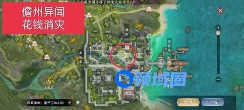 2、儋州的全部异闻参考上图,按照红圈的标记接取任务后跟着任务提示就可以完成了,不知道异闻在那的,看上图就行了。