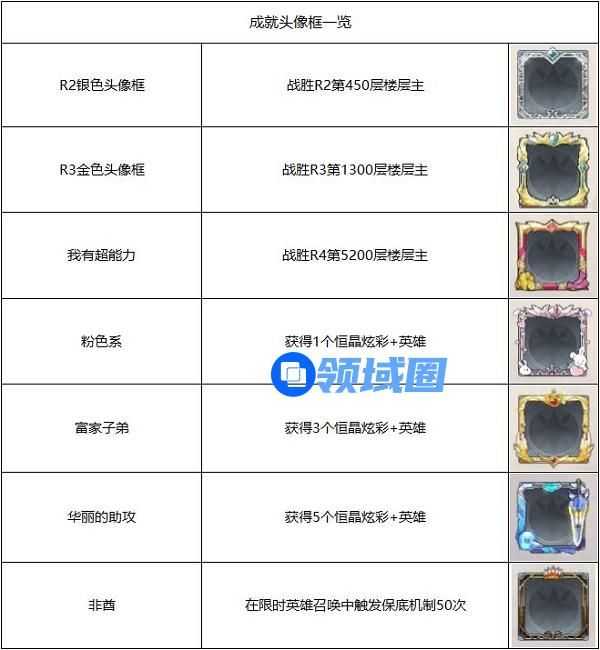 注2.“非酋”成就需要在限时召唤中触发50次保底机制才可获得,普通召唤的成就无法获得本头像框。