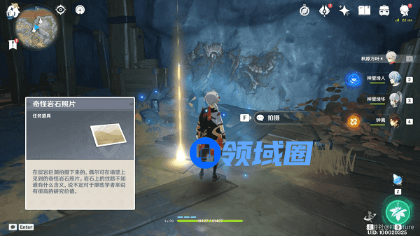 持有任意一张 「奇怪的岩石照片」,即可与学者海迪夫对话,触发任务「古代生物调查」。