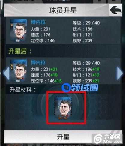 此对话框,【升星】需要十张球星卡,球星卡会在【俱乐部球探】、【官网活动】、当中产出,小伙伴们一定要积极参与,凑齐球员卡来提升我们中意的球员实力哦!