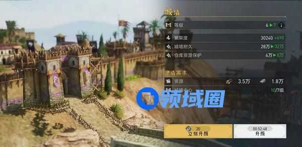 作为整个领地最重要的核心建筑,城镇中心中心的等级是其他所有建筑的上限。并且随着它的升级,我们还能开启更多的功能建筑,占领更多资源领地。包括至关重要的时代升级,也需要在城镇达到一定等级才能提升。