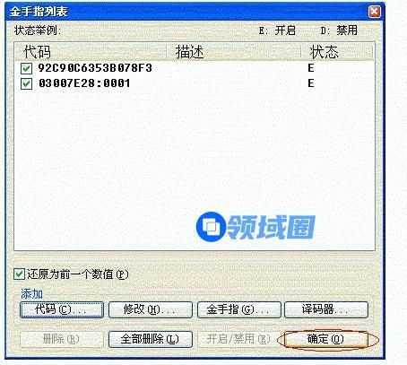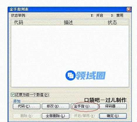 XX是物品的代码(见下表),输入后买下道具,之后删除金手指就可以了。