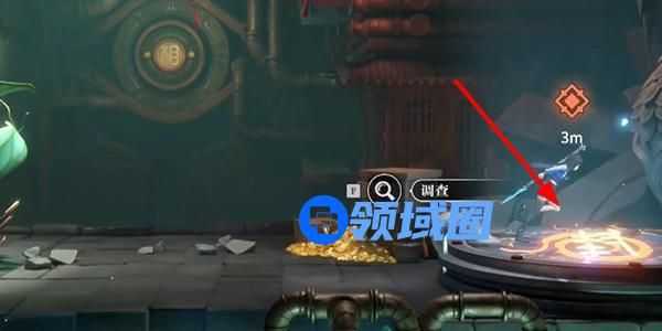 1、首先先来到下图位置,到达后需进行调查,调查后需提交面具即可将门打开;