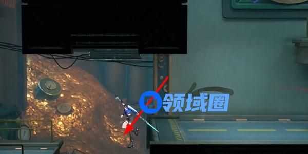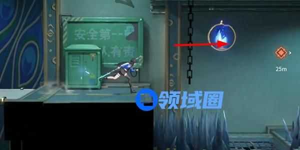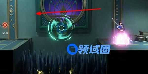6、到达后需向右边走,再过一个机关可获得道具,然后再坐电梯下去来到下图位置,下来后需进入传送门;