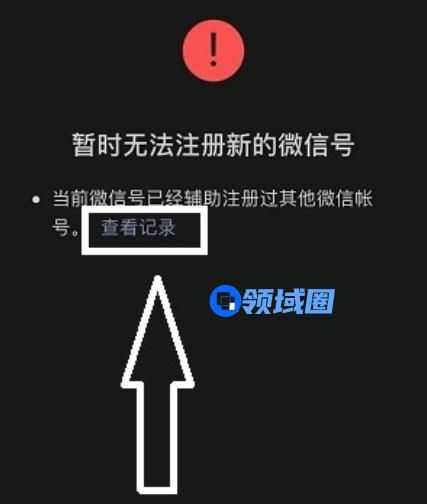 6、接着就会提示你无法通过此种方式注册,然后点击“查看记录”。