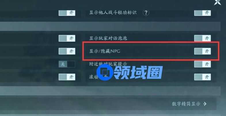 3、在右侧的其他显示下方找到隐藏npc选项,开启即可。