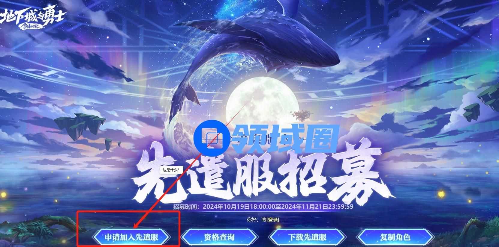 1、进入报名页面,首先点击[申请加入先遣服]按钮,提交后即视为报名成功,所有拥有DNF正式服账号的勇士均可报名。