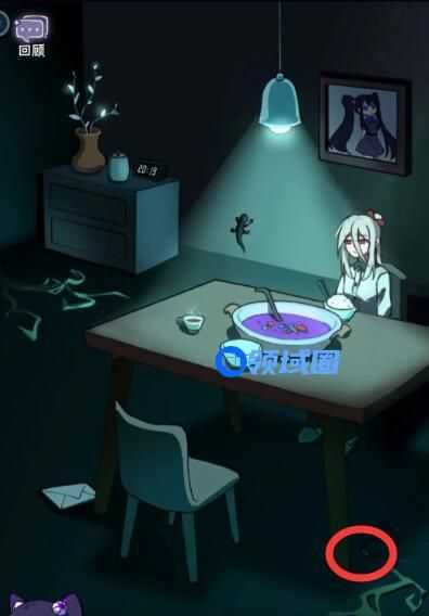 在图中右下角的桌子下,有一个很小的眼睛,玩家点击眼睛就能够找到了。