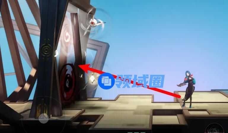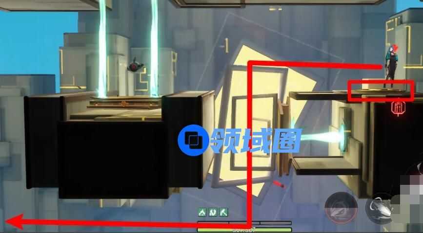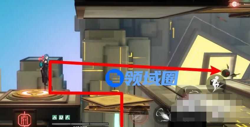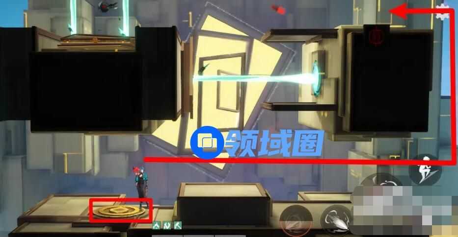 1、玩家在接取任务之后,就可以进入到挑战页面中,先站在左下方的机关位置,然后往右走,去到右上方的二层平台。