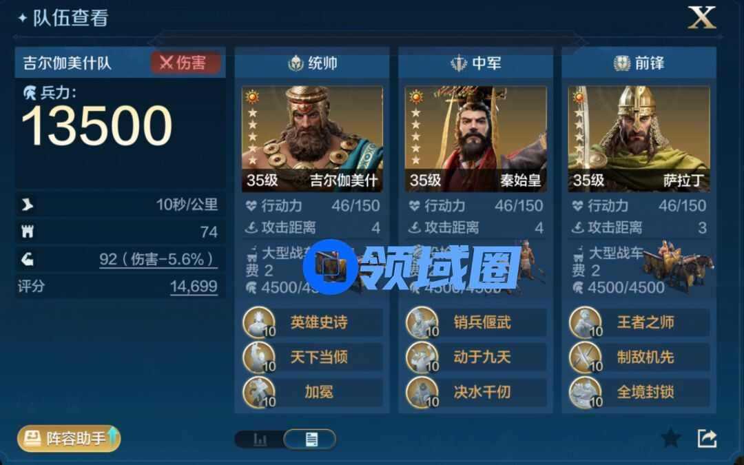 配队思路,辅助萨拉丁携带双封控制敌方全体+配合秦始皇输出,秦始皇带上神赏(双增伤)提高队伍爆发,比较走钢丝,