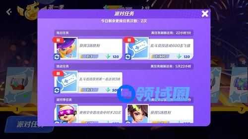 1、每日参与对局可以完成派对任务,获得排队奖章,解锁更多奖励。