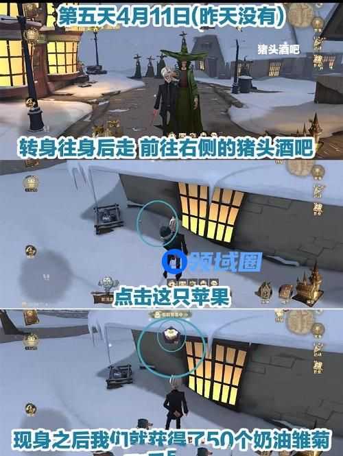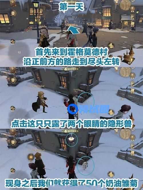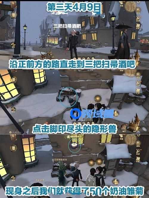 1、沿正前方路直走到三把扫帚酒吧点击脚印尽头的隐形兽,获得50。