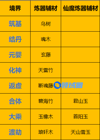 炼器辅材各境界的叫法不同,且辅材只能在用在当前境界的装备,见过太多想囤着辅材到下个境界用的道友了。下面为大家介绍每个境界的辅材名字: