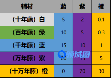 四、最后再说个个人玄学搭配,白材料加金藤、绿材料加紫藤、蓝材料加蓝藤容易出金,哈哈哈仅供各位道友参考哦!