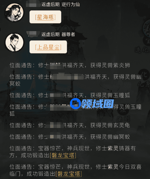 蓝色材料主要通过挂机秘境获得、而紫色材料可以通过坊市、旅行散商、以及储物袋和山河图开出!橙色材料只能通过神兽入侵宝箱和山河图获取!下面为大家介绍最常见的材料获取方式,挂机秘境!每个境界都会有三个图,分为前期秘境、中期秘境、后期秘境,每个图产出的炼器材料不一样。