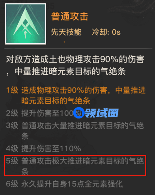 2、土也的普攻技能可以推进暗属性目标的气绝条,土也的普攻可以选择尽量升级到五级,可以极大的推进暗元素目标的气绝条,而副本的怪也都是暗元素,所以选择土也也是挺好的。
