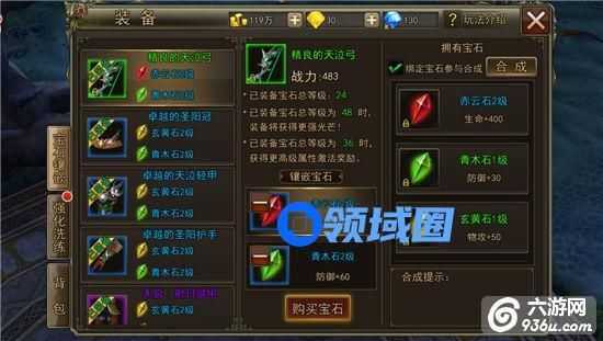 3个同属性同等级的宝石可以合成1个更高级的宝石;