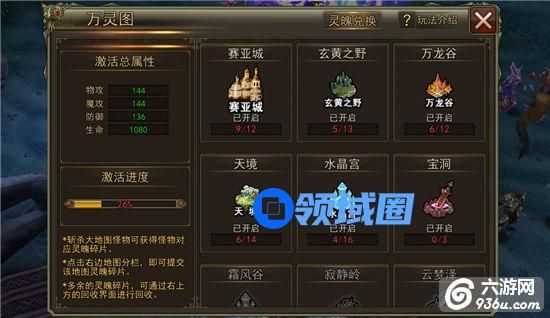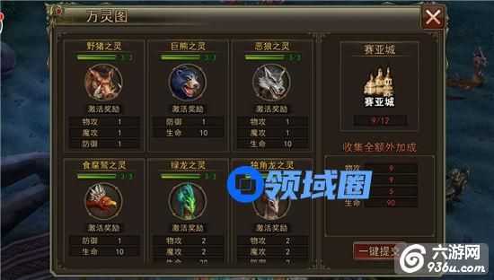 万灵图:搜集世界上不同怪物的灵魂碎片,达成搜集数量,会为玩家增加对应的属性加成;