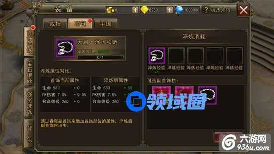 默认装备的首饰为主首饰,吞噬背包内的首饰。被吞噬的首饰会消失,且淬炼首饰获得属性加成;