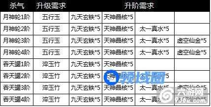 杀器,拥有5条属性,每次升级、升阶都会增加属性值;