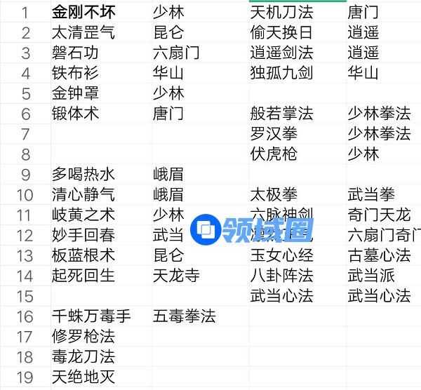 2.首先是前15关,金刚不坏,太清罡气,板蓝根术,伏虎枪,般若掌,罗汉拳,起死回生,六脉神剑。偷天换日,逍遥剑法,另外4五毒。总计14技能。配置低一些也有可能过15但是不稳定就浪费券了。15过了以后补6少林,4医术,6外功。在26关之前拿到独孤九剑或者天机刀法招式。个人认为前30难度只在15和26。