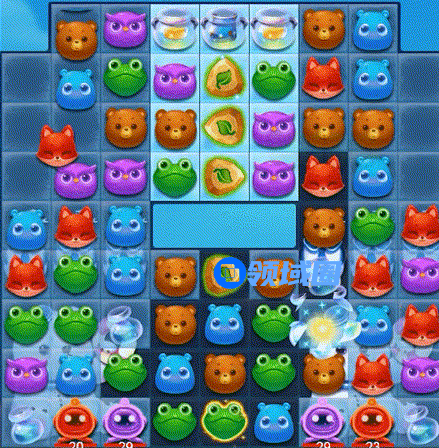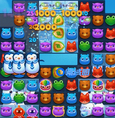 消除蜂蜜罐,消除顶部雪块救出被困小动物。