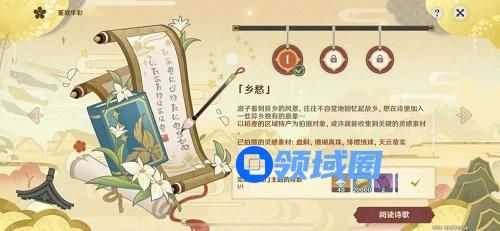 任务要求:拍摄4张不同的稻妻区域特产照片,帮助寻找灵感,完成「乡愁」主题的诗歌。