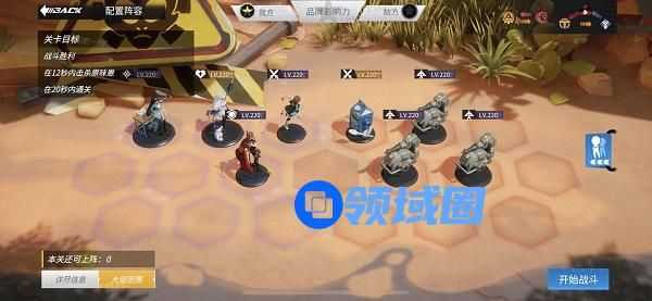 2.困难模式角色阵容及站位如下:
