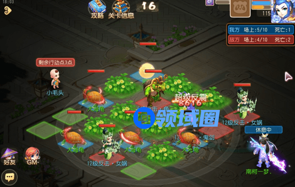 4、除此之外,我们也可以利用大海龟前20回合拥有10000额外气血的特性,让大海龟在前期频繁靠近非律法单位,利用超级反震达成多次击杀,进而保证我方胜利时拥有更多的棋子。