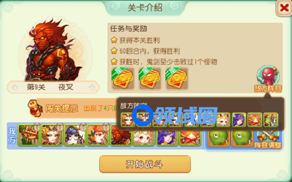 1、第9关的战斗中,我们将面对对手4只律法的围攻。