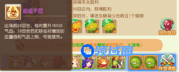 4、相比海毛虫,大海龟增加了超级不屈技能,大海龟登场后,前20回合获得10000气血上限,20回合后扣除10000气血(可能致死)。