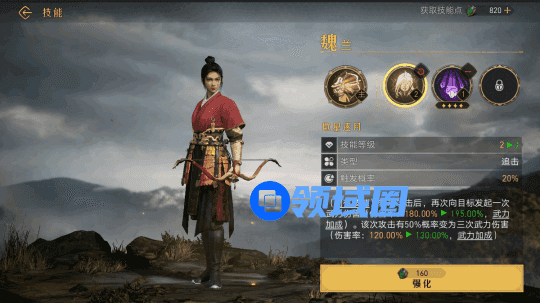 2、在阵容搭配上分主将和副将两种情况,如果是主将的话推荐搭配不屈女王和亨利走弓兵路线,技能也要选择纯输出技能,不屈女王的降低目标守备效果对纯武力输出的魏兰来说堪称如鱼得水,亨利则是防御担当,3秒沉默配合魏兰爆发,往往让敌方还没有放出技能就被消灭掉了。