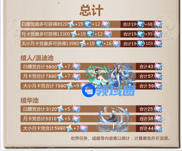 强调:未知成就等难以统一的部分进行了保守估算或者未列入表中,所以预计大家实际能够获取的原石数量会比统计数高一些。