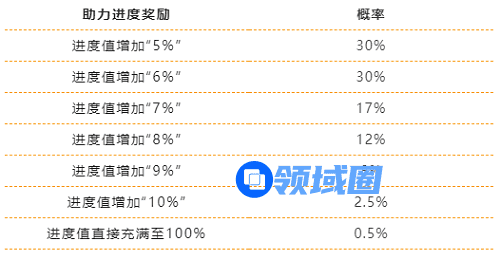 3.助力进度奖励(每次助力随机获得),概率如下: