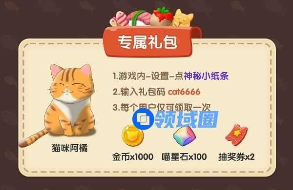 3、领取方法:游戏内-设置-小纸条 输入礼包码cat6666
