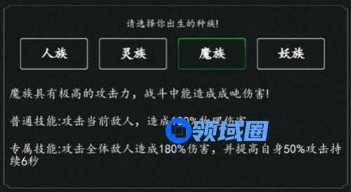 4、魔族:中后期的输出王者。前期会偏弱势,后面装备供给上来后,角色的攻击数值将会呈爆炸增长,喜欢体验PVP的,魔族应该会是首选。