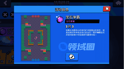 4、最后一个阶段的地图就是宝石争霸地图了,不难发现,这个地图有很多的草丛,在宝石出口周围,有很多的墙围着,所以说这个地图最有优势的当然是罗莎了,罗莎可以考虑带种植草的秒具,以及在草丛中每秒回复200血量的星辉,只要在宝石口周围中上草,就可以无限输出了,脆皮根本打不到,他要想来打你直接就把他秒了。