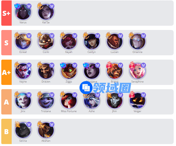 2、T1梯队 维鲁斯和卡莎个人觉得强度没这么高,和S强度英雄是持平的,各种对局情况随机,英雄发挥也不同,发条走下比较奇葩,可能是外服的理解吧。