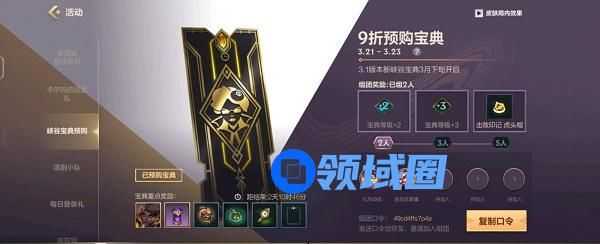 5.复制口令:@8bf64djhm2us@(手Q) 粘贴本条文案输入'峡谷宝典预购活动'参与组团领奖