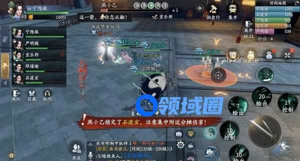 9.二技能【百步穿杨】会锁定场上一名玩家,会对其造成巨额伤害。此时需要其他玩家一起在圈内抱团,即可为其平摊伤害。当然如果血量太低不建议去平摊。如图所示,燕小乙只剩下一点血,不用走机制直接集火秒掉即可。