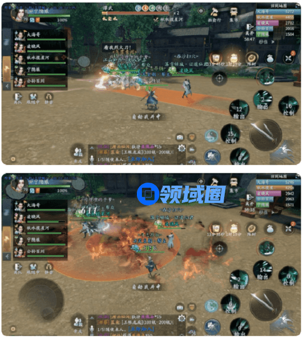 4.首先是【八荒烟尘】,是一个扇形的面向技能。这个技能施放较慢,我们有充足的时间躲开。
