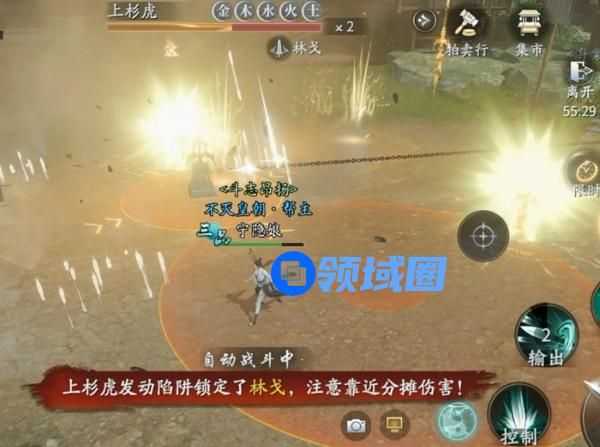 6.上杉虎的三技能【山虎】施放后,会在场上出现多个红圈,并且发动陷阱锁定场上一名玩家。注意躲避第一波的红圈,之后再跟被锁定的玩家抱团,进而帮助队友分摊伤害。(由于小编初次打的时候是双人组队,导致个人分摊伤害太高,直接暴毙了……所以还是建议大家组满5人进入副本)