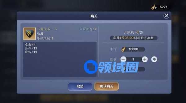 2.三角小石的选择方面,以攻心小石为佳;月卡玩家可以考虑先以三势小石过渡,三势小石可以通过天魁币商店购买,每月限购2颗。