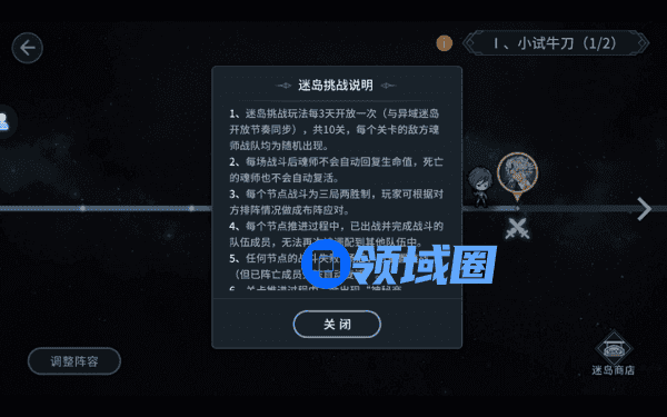 迷岛挑战赛模式不同于之前的异域迷岛,它不会限制职业,同样也没有buff加成,因此需要玩家对自己的阵容灵活搭配,更新时间与之前的迷岛挑战一致(即每三天更新一次)