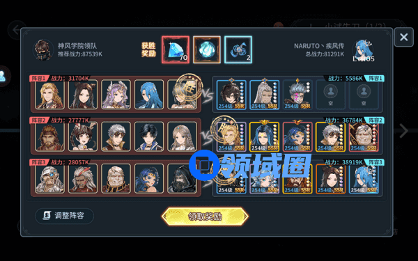 又或者你遇到如下关卡阵容时,敌方最高战力是31704k,虽然我两只队伍的均衡实力都在这个战力之上,但对方有朱竹清这种高爆发切后排的单攻,因此随便上一只队伍去故意输,然后将核心战力放到下面两场比赛中,这样既能保证后排不会被打残,又能轻松通关。