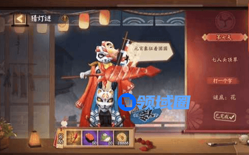 阴阳师猜灯谜2022活动花彩庆猜宵第七天谜语是:七人头顶草(打一个字),那么阴阳师灯谜七人头顶草答案是什么?游戏宝小编为您带来阴阳师灯谜七人头顶草答案攻略。