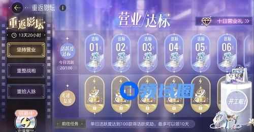 2、坚持营业,完成每日任务,达到100点活跃度时可领取一次奖励,共计可领10天。
