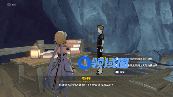 接下来旅行者只需要等到现实中的第二天(游戏凌晨4点刷新后),再次来到营地,接近塔列辛后会自动进入对话。