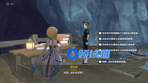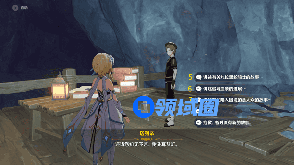 下面是7个故事对应的任务和成就,若旅行者缺少选项,只需完成对应任务和成就后,再来找塔列辛对话即可。